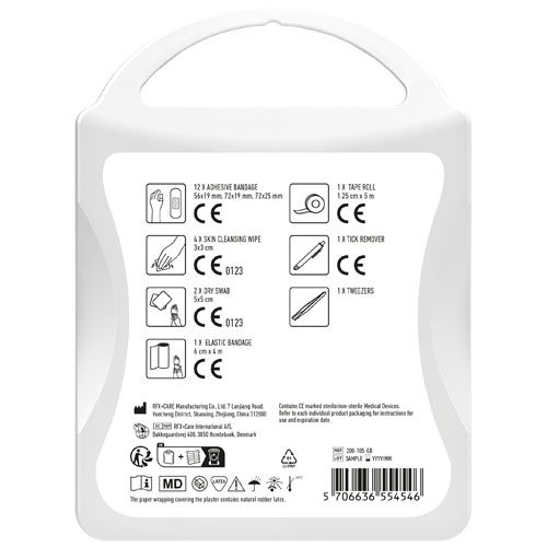 Le kit premiers secours pour tous les propriétaires d'animaux. Contient:12 pansements, 4 cotons pour nettoyer la peau, 2 cotons secs, 1 retire tique, 1 bandage élastique, 1 pince à épiler, 1 bande adhésive. Tous les contenus à l'intérieur des kits sont conformes à la législation européenne. Le prix comprend l'étiquette personnalisée.