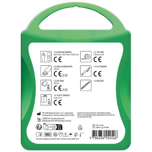 Le kit premiers secours pour tous les propriétaires d'animaux. Contient:12 pansements, 4 cotons pour nettoyer la peau, 2 cotons secs, 1 retire tique, 1 bandage élastique, 1 pince à épiler, 1 bande adhésive. Tous les contenus à l'intérieur des kits sont conformes à la législation européenne. Le prix comprend l'étiquette personnalisée.