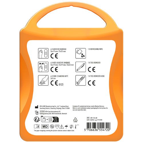 Le kit indispensable pour retirer les tiques et traiter leurs morsures. Contient:4 pansements, 4 cotons pour nettoyer la peau, 1 retire tique bleu (humains), 1 retire tique crochet (orange), 4 pansements pour enfants, 1 lingette rafraichissante. Tous les contenus à l'intérieur des kits sont conformes à la législation européenne. Le prix comprend l'étiquette personnalisée.