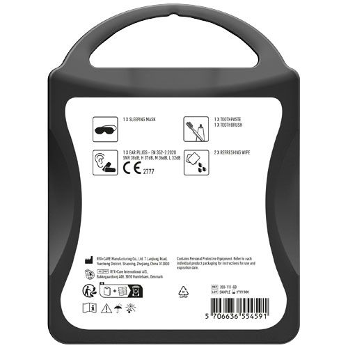 Le kit avion vous permet de vous relaxer et vous rafraichir pour arriver en pleine forme à destination. Contient: 1 masque pour les yeux, 2 bouchons d'oreille, 2 lingettes rafraîchissantes. Tous les contenus à l'intérieur des kits sont conformes à la législation européenne. Le prix comprend l'étiquette personnalisée.