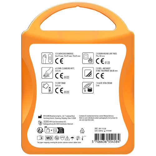 Le kit indispensable pour prévenir ou soulager les morsures ou piqures d'insectes. Contient: 12 pansements, 4 cotons pour nettoyer la peau, 2 cotons secs, 2 compresses pour les brulures,1 patch pour les piqures d'abeilles, 1 crème aloe vera.Tous les contenus à l'intérieur des kits sont conformes à la législation européenne. Le prix comprend l'étiquette personnalisée.