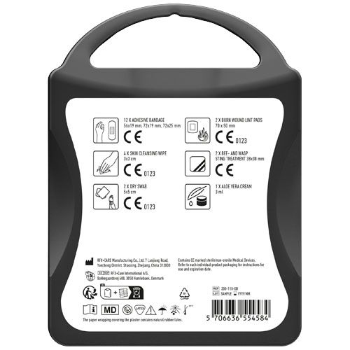 Le kit indispensable pour prévenir ou soulager les morsures ou piqures d'insectes. Contient: 12 pansements, 4 cotons pour nettoyer la peau, 2 cotons secs, 2 compresses pour les brulures,1 patch pour les piqures d'abeilles, 1 crème aloe vera.Tous les contenus à l'intérieur des kits sont conformes à la législation européenne. Le prix comprend l'étiquette personnalisée.