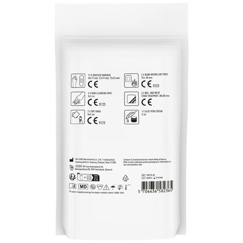 Le kit indispensable pour prévenir ou soulager les morsures ou piqures d'insectes. Contient: 12 pansements, 4 cotons pour nettoyer la peau, 2 cotons secs, 2 compresses pour les brulures,1 patch pour les piqures d'abeilles, 1 crème aloe vera.Tous les contenus à l'intérieur des kits sont conformes à la législation européenne. Le prix comprend l'étiquette personnalisée. Livré en pochette papier.