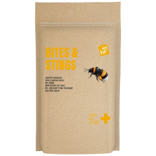 Le kit indispensable pour prévenir ou soulager les morsures ou piqures d'insectes. Contient: 12 pansements, 4 cotons pour nettoyer la peau, 2 cotons secs, 2 compresses pour les brulures,1 patch pour les piqures d'abeilles, 1 crème aloe vera.Tous les contenus à l'intérieur des kits sont conformes à la législation européenne. Le prix comprend l'étiquette personnalisée. Livré en pochette papier.