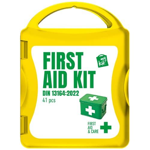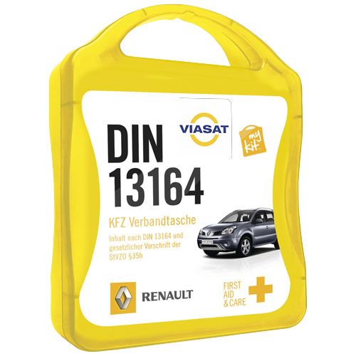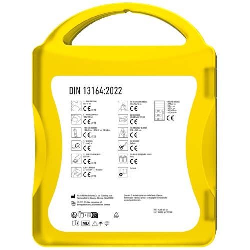 Le kit premiers secours complet pour la voiture approuvé DIN. Contient: 3 pansements de premiers secours 8 mx 10 cm, 1 pansement de premiers secours 10 mx 12 cm, 2 pansements pour brulure 40 x 60 cm, 1 pansement pour brulure 60 x 80 cm, 3 compresses enroulées, 2 bandages élastiques 4 mx 6 cm, 3 élastiques 2 pansements adhésifs, 2 paires de gants jetables, 2 bandages triangulaires, 1 couverture de survie, 2 cotons pour nettoyer la peau, 2 pansements de doigts 70 x 40 mm, 2 pansements 120 x 20 mm, 2 pansements 72 x 19 mm.Tous les contenus à l'intérieur des kits sont conformes à la législation européenne. Le prix comprend l'étiquette personnalisée.
