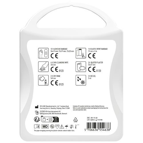 Le kit premiers secours pour tous les sportifs en prévention des petites blessures. Contient: 12 pansements, 4 cotons pour nettoyer la peau,2 cotons secs, 2 sachets de gel froid,2 pansements,1 bandage élastique pour le sport. Tous les contenus à l'intérieur des kits sont conformes à la législation européenne. Le prix comprend l'étiquette personnalisée.