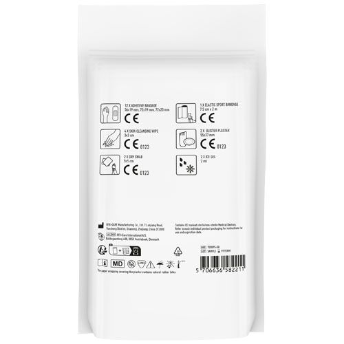 Le kit premiers secours pour tous les sportifs en prévention des petites blessures. Contient: 12 pansements, 4 cotons pour nettoyer la peau,2 cotons secs, 2 sachets de gel froid,2 pansements,1 bandage élastique pour le sport. Tous les contenus à l'intérieur des kits sont conformes à la législation européenne. Le prix comprend l'étiquette personnalisée.Livré en pochette papier.