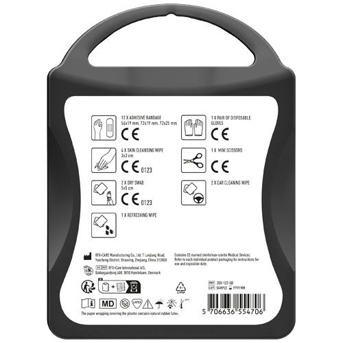 Le kit indispensable dans toutes les voitures pour parer à tous les petits incidents en voyage. Contient:12 pansements, 2 cotons pour nettoyer la peau, 2 cotons secs, 1 paire de gants jetables, 1 lingette pour la voiture (2 pack), 1 lingette rafraichissante, 1 mini paire de ciseaux. Tous les contenus à l'intérieur des kits sont conformes à la législation européenne. Le prix comprend l'étiquette personnalisée.
