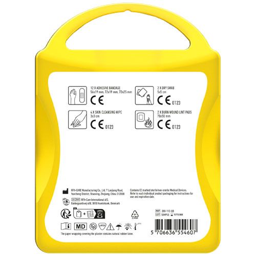 Le kit basique de premiers secours pour les voyageurs. Contient:12 pansements, 4 cotons pour nettoyer la peau, 2 cotons secs, 2 compresses pour les brulures. Tous les contenus à l'intérieur des kits sont conformes à la législation européenne. Le prix comprend l'étiquette personnalisée.