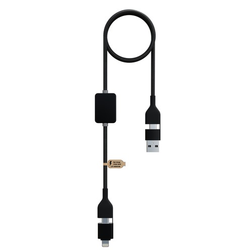 Le câble est fabriqué à partir de matériaux écologiques : ABS, PET et aluminium 100 % recyclés. Caoutchouc doux au toucher à l'importation / ABS 100 % recyclé avec finition satinée en stock.