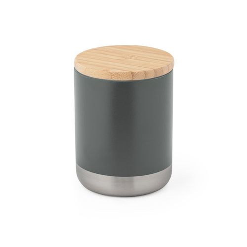 Verre en acier inoxydable (36% recyclée), double parois et couvercle en bambou avec joint en silicone pour une protection supplémentaire. Capacité allant jusqu'à 370 mL. il est recouvert d'un revêtement en poudre qui lui confère plus de durabilité et de résistance. Livré dans une boîte cadeau en papier kraft. Le produit étant fabriqué à partir de matériaux naturels, la couleur du produit ainsi que le résultat de l'impression peuvent varier d'un produit à l'autre. ø80 x 106 mm