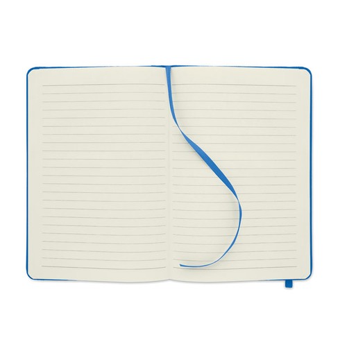 Carnet A5 avec couverture rigide en RPET 600D. Reliure. 160 pages lignées en papier recyclé (80 feuilles). Bande élastique de fermeture et ruban marque- page assortis. FSC®- certified | FSC MIX CREDIT, P7.1, FSC- C213206