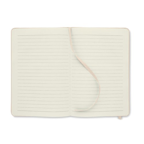 Carnet A5 avec couverture rigide en RPET 600D. Reliure. 160 pages lignées en papier recyclé (80 feuilles). Bande élastique de fermeture et ruban marque- page assortis. FSC®- certified | FSC MIX CREDIT, P7.1, FSC- C213206