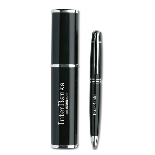 Stylo bille twist métal dans boite cadeau aluminium. Encre noire.