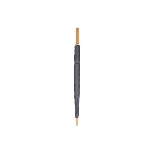 Parapluie bâton en R- PET avec un manche en bois au design emblématique. Grâce à sa monture en fibre de verre, ce parapluie à une excellente résistante aux vents. Ces embouts sont en bambou et son manche est en métal pour un meilleur recyclage. L'aspect de sa toile chinée lui donne un look luxueux (le noir est de couleur unie).Matières :R- PET, Bois