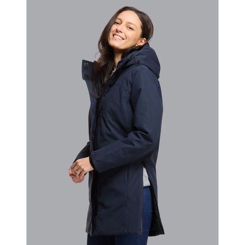 Parka femme longue et ajustée. Fabriquée en polyester 200g/m² avec une doublure en taffetas 290T, elle est matelassée en duvet synthétique 200g/m² pour une chaleur optimale. Dotée de détails pratiques : poche anticoeur avec rabat, poche intérieure passepoilée, zip central waterproof YKK sous rabat à pressions, capuche intégrée avec serrage élastique et manchons en spandex pour plus de confort. Les fentes d'aisance aux hanches et les poches latérales zippées assurent une grande liberté de mouvement (idéal pour pratique du 2 roues, vélo, moto par exemple). Coupe ajustée. Disponible en Noir et en Marine, de la taille XS à 2XL. Disponible sur stock et livré sous 24/48h sans personnalisation, coloris disponibles : Noir, Marine dans les tailles XS- S- M- L- XL-2XL