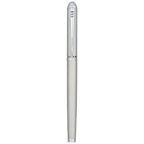 Parure stylo à bille avec mécanisme twist au design exclusif et roller. Disponible en noir brillant, argenté mat et bleu mat. Emballé dans une boîte cadeau « LUXE » (17 x 5,5 x 3 cm).