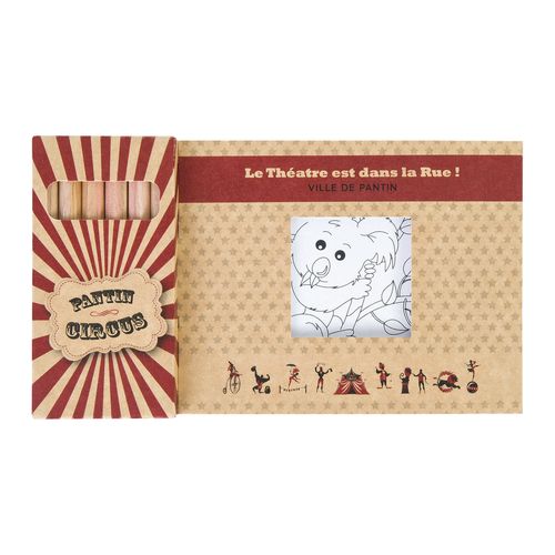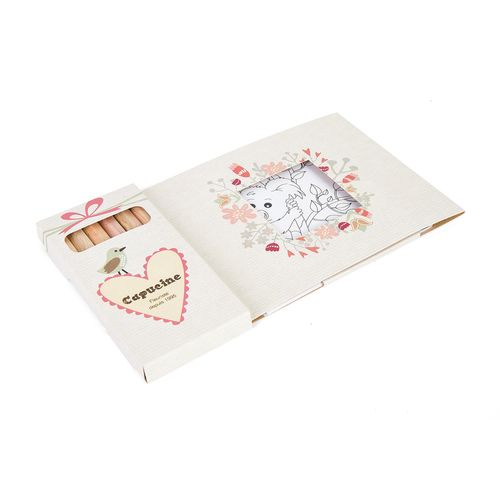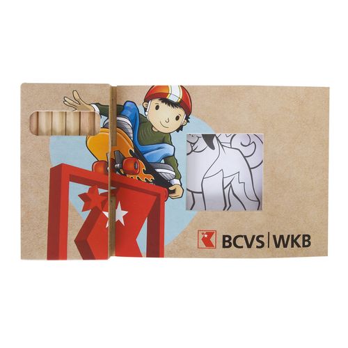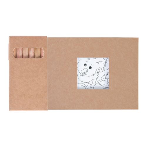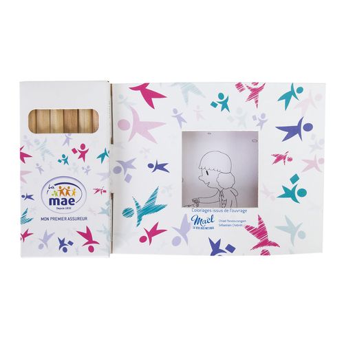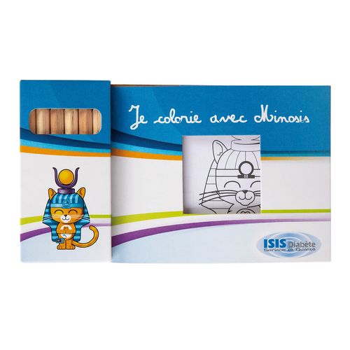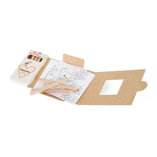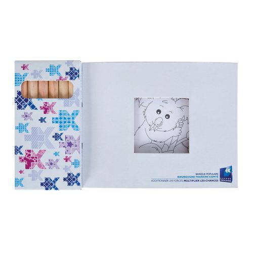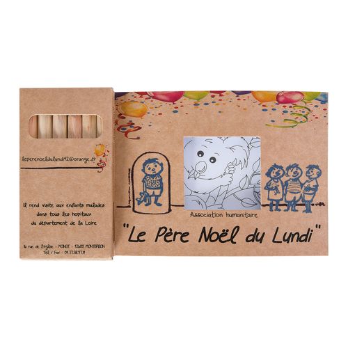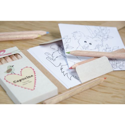 KIT COLORIAGE DE 6 CRAYONS de COULEUR ECO 8,7 cm, HEXAgonaux, SANS VERNIS, tête coupée - 12 feuillETs coloriage (visuels différents)