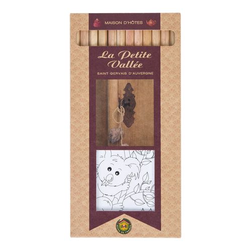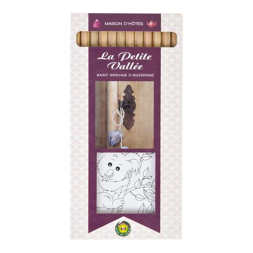 KIT COLORIAGE DE 12 CRAYONS de COULEUR ECO 8,7 cm, HEXAgonaux, SANS VERNIS, tête coupée - BLOC de 50 feuillETs dont 12 coloriages ET 38 feuilles VIERGES