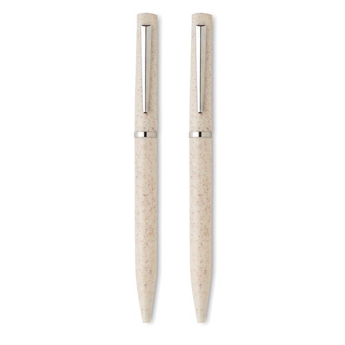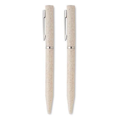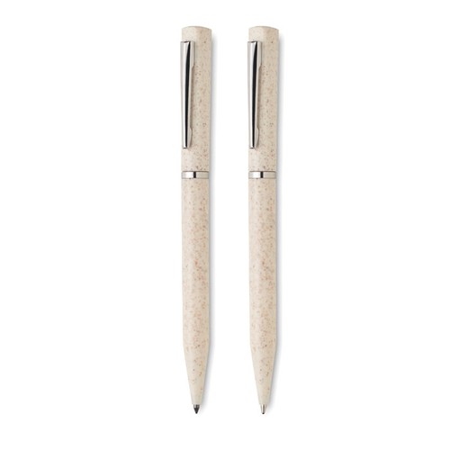 Parure de stylos en paille de blé/ABS comprenant 1 stylo bille twist à encre bleue et 1 stylo bille twist graphite sans encre. Présenté dans une boîte en papier recyclé. FSC®- certified | FSC MIX, P5.1, FSC- C213206