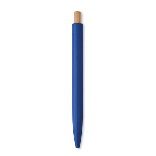 Stylo bille en ABS recyclé avec bouton poussoir en bambou. Encre bleue.