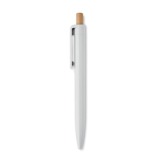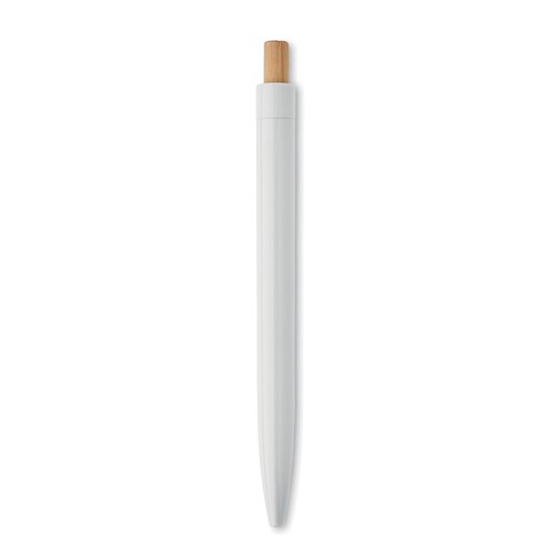 Stylo bille en ABS recyclé avec bouton poussoir en bambou. Encre bleue.