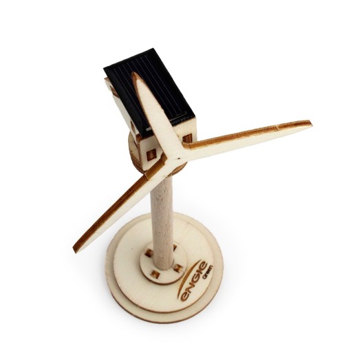 • Eolienne solaire en bois équipée d’un capteur solaire + moteur électrique pour faire tourner les hélices