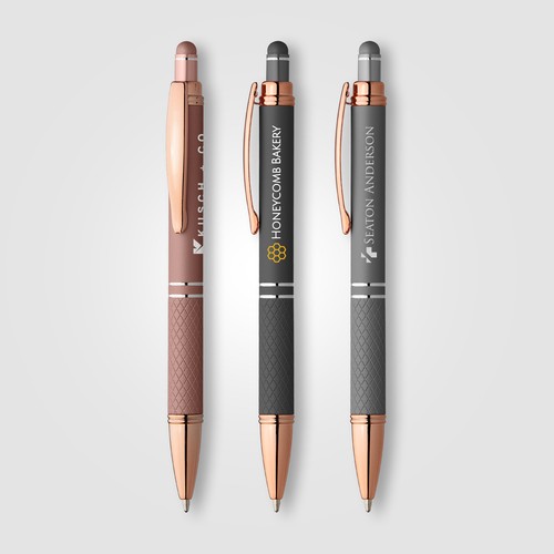 Les riches couleurs minérales du corp de ce stylo, avec un stylet de couleur assortie, des garnitures en or rose, des anneaux chromés et une poignée à motif de diamant s'unissent pour conférer une élégance détaillée à ce cadeau tendance. La touche finale du soft touch rend ce stylo vraiment remarquable. Personnalisez avec une gravure laser argentée sur le corp pour une visibilité durable. Donnez à votre marque l'attention qu'elle mérite sur ce stylet rétractable très élégant.