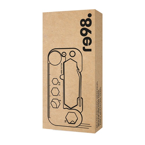 L'outil multiple en métal robuste et a une surface galvanisée qui protège contre l’usure. Le marquage publicitaire sur l'outil multiple peut être réalisé avec une gravure laser élégante.