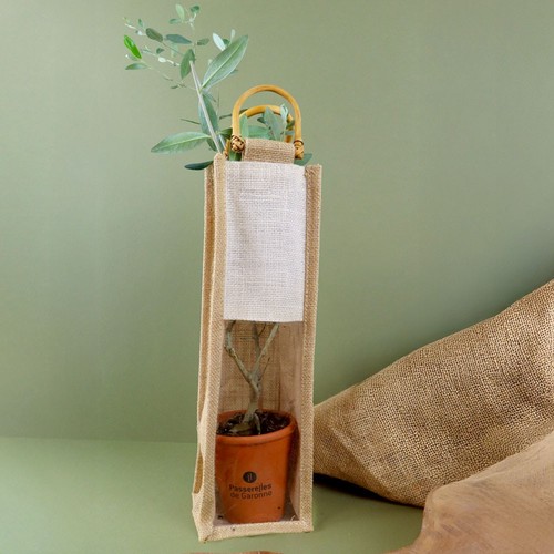 • Sac en toile de jute avec poignée et fenêtre transparente