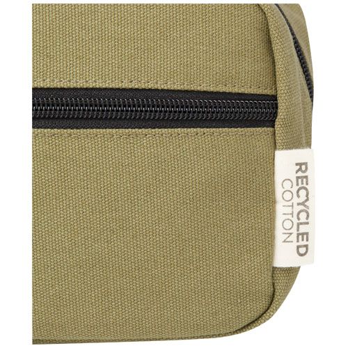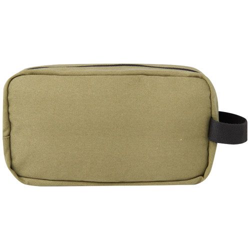 Pochette pour accessoires de voyage en toile recyclée certifiée GRS et doublure en RPET certifiée GRS. Dotée d'une poche frontale zippée et d'un compartiment principal zippé avec des poches de rangement, et d'une sangle confortable. La plaque métallique décorative peut faire briller un logo grâce à sa finition subtile et mate. Capacité : 3,5 litres.