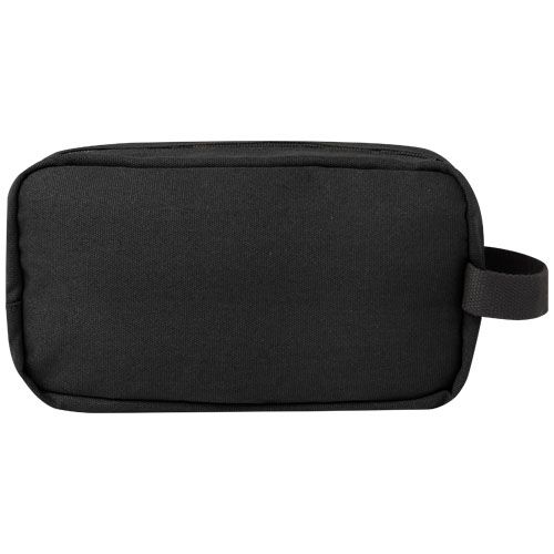 Pochette pour accessoires de voyage en toile recyclée certifiée GRS et doublure en RPET certifiée GRS. Dotée d'une poche frontale zippée et d'un compartiment principal zippé avec des poches de rangement, et d'une sangle confortable. La plaque métallique décorative peut faire briller un logo grâce à sa finition subtile et mate. Capacité : 3,5 litres.