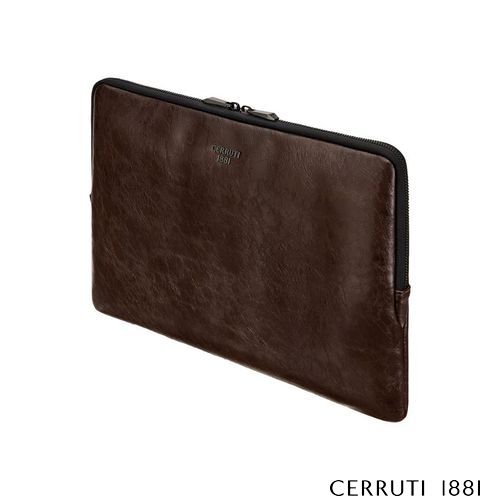 Part of our most fashion- forward line, the Hudson laptop pouch is defined by beautifully textured, vintage- inspired surfaces in the deepest chocolate hue, luxuriously finished with gunmetal accents, from the Cerruti 1881 signature to the newly developed RR zippers. Its minimal and modern shape creates a striking contrast with the aged material finish, expressing a refined dialogue between contemporary design and retro inspiration. The interior is fully monogrammed in a tone- on- tone execution, reinforcing its understated luxury. Luxurious, minimal and fashion- forward with a subtle retro nod, it is designed to protect and elevate everyday essentials.