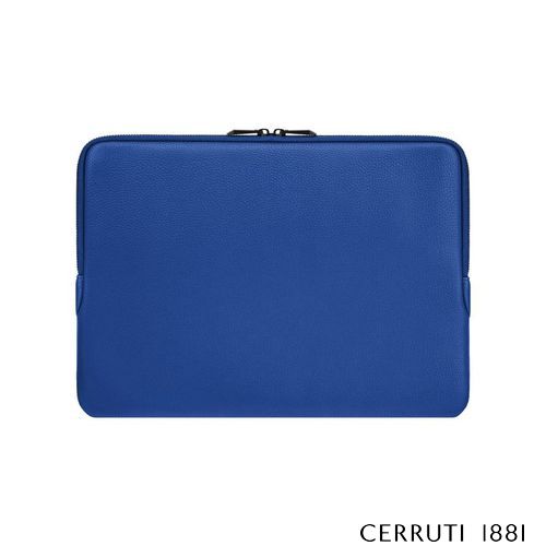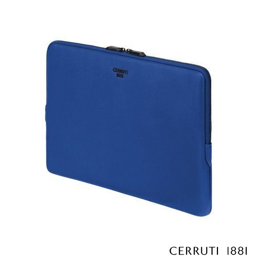 The Jefferson computer pouch in bright blue with matte black trims delivers a fashion- forward attitude while remaining an essential, functional everyday accessory. Compact and protective, it is crafted from a carefully selected matte- grained texture that brings a contemporary vibrancy to the minimal silhouette. Matte black metal accents—including the new Cerruti 1881 plate and angular signature zipper pullers engraved with RR—create a striking contrast and a distinctive finishing detail. With its monogramed lining and beautifully executed simplicity, the piece stands as a bold yet timeless companion.