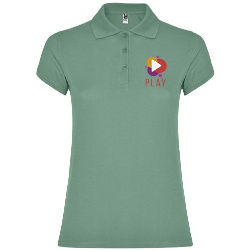 Polo à manches courtes pour femme. Coutures recouvertes renforcées à l'intérieur du col. Col et poignets en côte 1x1. Coutures latérales et coupe ajustée. Patte de boutonnage étroite à 3 boutons. Fentes latérales. Étiquette détachable. Le mannequin mesure 179 cm et porte la taille S.