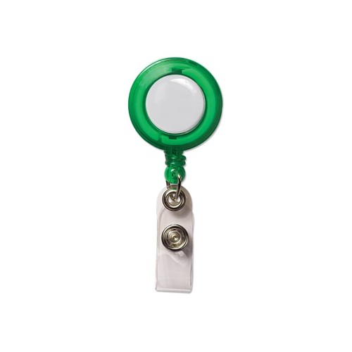 Porte- badge transparent avec cordon rétractable. Impression par Doming sur le support. Le cordon fait 50 cm.