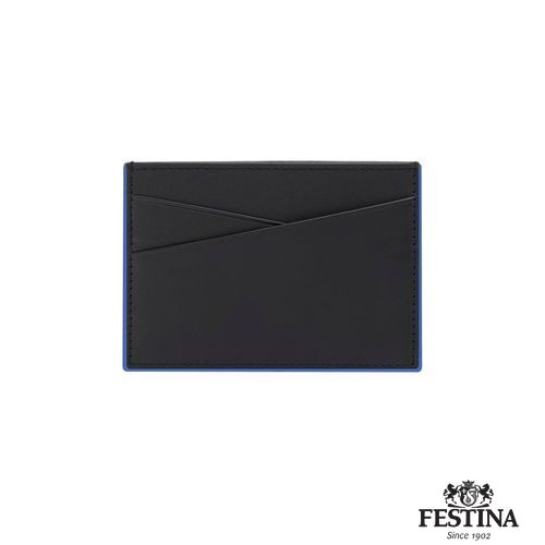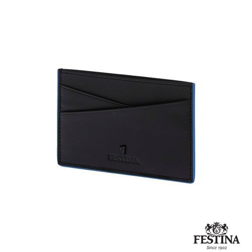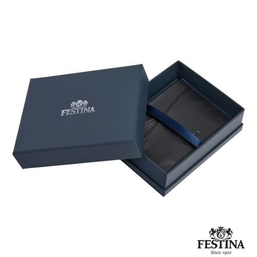 Le porte- cartes Black Edition de Festina témoigne d'une élégance intemporelle avec une touche d'audace. Fabriqué à partir de cuirs noirs mats soigneusement sélectionnés, il est signé de l'emblématique plaque F dans une finition noire mate tonale. Le design est rehaussé par des détails bleus vibrants, qui ajoutent un contraste dynamique à l'esthétique épurée. Doté de deux fentes obliques pour cartes, signature de Festina, à l'avant et à l'arrière, et d'un compartiment principal sur le dessus, ce porte- cartes allie harmonieusement fonctionnalité et style. Un véritable classique réimaginé pour l'ère moderne.