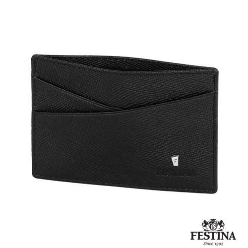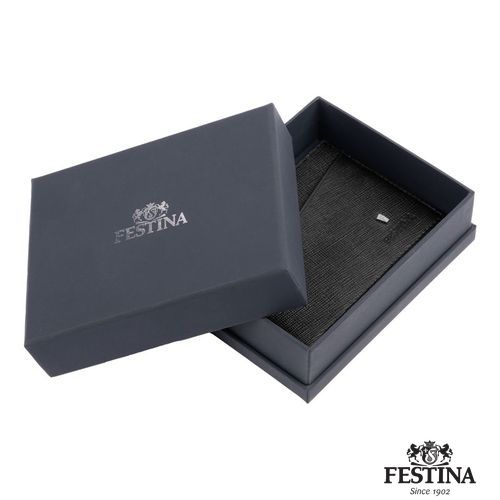 La ligne de petite maroquinerie "Chronobike" est fabriquée en cuir véritable de qualité, à la texture Saffiano. Cette version noire est ornée d'une signature chromée incluant la lettre "F" de Festina, dans une forme trapézoïdale. Ce porte- cartes est dans la tendance minimaliste actuelle, compact et pratique, avec 4 fentes latérales et un compartiment principal pour les cartes en son milieu. Tous les articles Festina sont équipés d'une doublure de protection RFID.