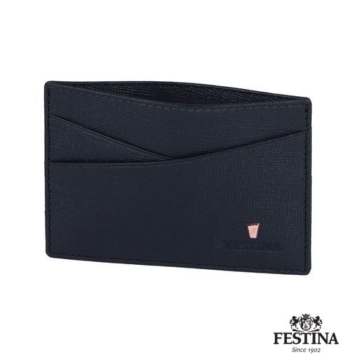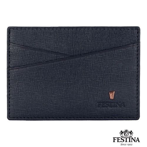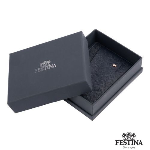 La ligne de petite maroquinerie "Chronobike" est fabriquée en cuir véritable de qualité, à la texture Saffiano. Cette version bleue marine est ornée d'une signature en or rose incluant la lettre "F" de Festina, dans une forme trapézoïdale. Ce porte- cartes est dans la tendance minimaliste actuelle, compact et pratique, avec 4 fentes latérales et un compartiment principal pour les cartes en son milieu. Tous les articles Festina sont équipés d'une doublure de protection RFID.