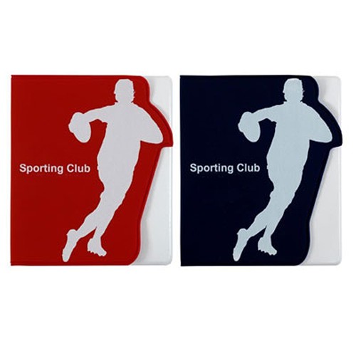 Le Porte- Cartes 2 vues à l'usage des Clubs de Rugby Professionnels ou Clubs Amateurs et d'Entreprise :- créé par soudure de 2 matières de coloris différent : un 1er coloris pour le volet à forme découpe et le second volet, un 2ème coloris pour la poche intérieure de droite,- silhouette de Joueur sérigraphiée en 1ère de couverture, avec marquage logo du Club, possibilité de marquage au dos de l'étui pour les mentions complémentaires (coordonnées, contacts, site internet...),- modèle bicolore aux coloris composables selon vos préférences,- large choix de matières PVC recyclable PRESTIGE très qualitatives, épaisseur 1 à 1,2 mm : GRENADINES, piquée pointillés, moirée ou mouchetée, matière striée satinée plus haut de gamme, SHETLAND imitation cuir.Fabrication en toutes quantités dans nos Ateliers.Dim. : H 9,5 x 8 cm (fermé)