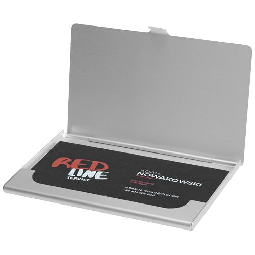 Porte - cartes de visite en aluminium. Peut contenir 10 cartes de visite environ.