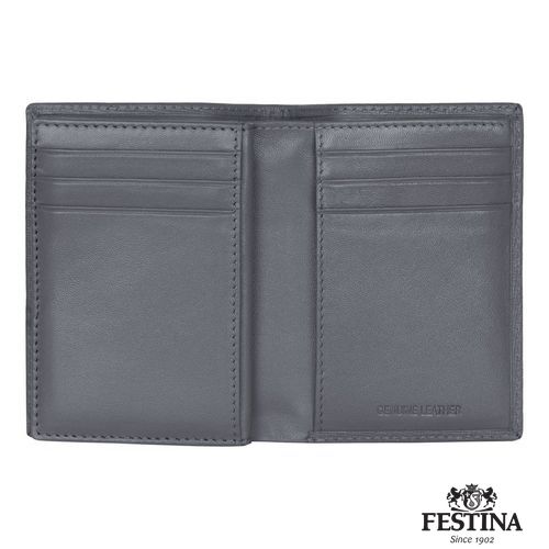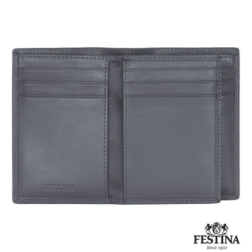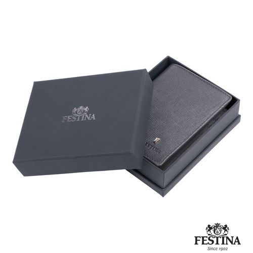 La ligne de petite maroquinerie "Chronobike" est fabriquée en cuir véritable choisi minutieusement avec une texture saffiano. Cette version grise est ornée de la signature iconique du logo F en forme de trapèze, de couleur chromée. Il est souligné par le nom de Festina embossé dans le cuir. Ce porte- cartes est minimaliste, compact et très pratique, avec de nombreuses fentes pour les cartes et deux compartiments pour les billets de banque sur le dessus. Tous les articles Festina sont équipés d'une doublure protectrice RFID.