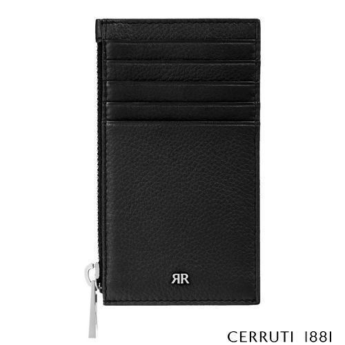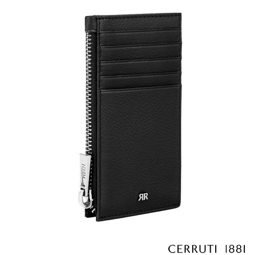 The CERRUTI 1881 Jefferson zipped card holder is compact and highly functional, featuring five front card slots and a roomy main zipped compartment with a gusset for easy access and added capacity. Crafted from carefully chosen grained, best- quality leather, it balances practicality with a refined tactile feel. Its metal accents bring a distinctive twist: the luxurious 1881- engraved zipper puller adds a striking touch of craftsmanship, while the miniature double R logo in crisp chrome enhances the classical black version with an elegant, timeless contrast.