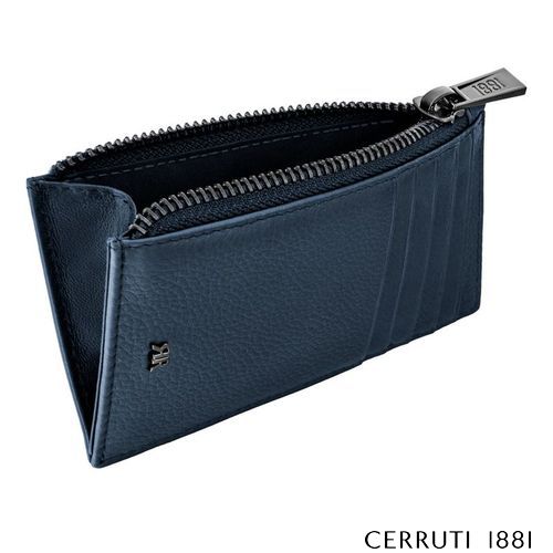 The CERRUTI 1881 Jefferson zipped card holder is compact and highly functional, offering five front card slots and a spacious gusseted zipped compartment that keeps essentials neatly organised within a slim silhouette. Made from carefully selected grained, best- quality leather, it delivers both durability and understated refinement. Elevated by its luxurious 1881- engraved zipper puller, the metal detailing adds depth and sophistication, while the miniature double R logo in gunmetal complements the elegant navy version with a subtle, contemporary character.