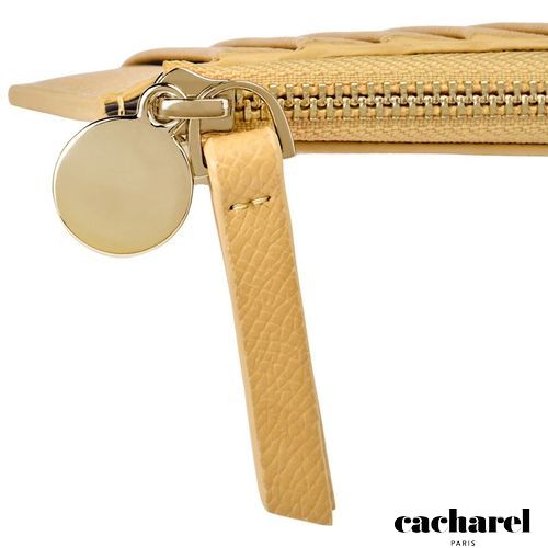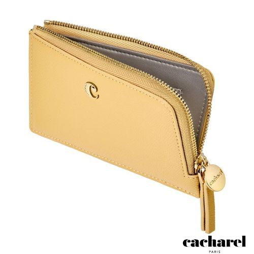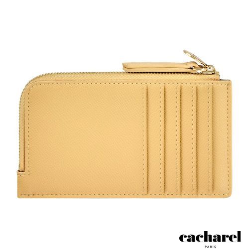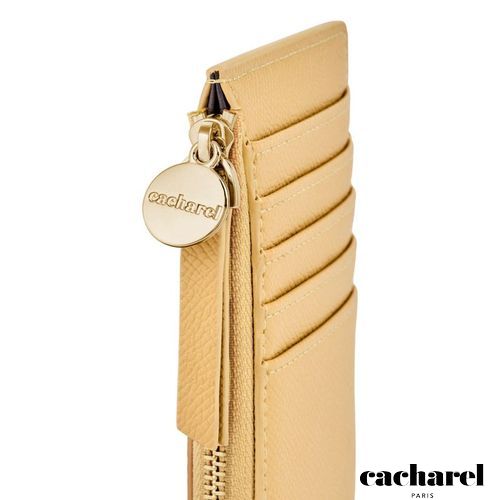 The Seraphine card holder combines practicality with a touch of playful elegance. This long zipped design is crafted from beautiful saffiano- textured vegan leather with a luxurious matte finish. It is signed with a gold- toned C plate on the front and completed by a refined metal plate on the zipper puller. Its spacious main compartment allows for easy organization, complemented by one inner card slot and five additional card slots on the back. A functional yet stylish everyday essential. This yellow version features a contrastive taupe lining adding an extra layer of playfulness to this accessory.