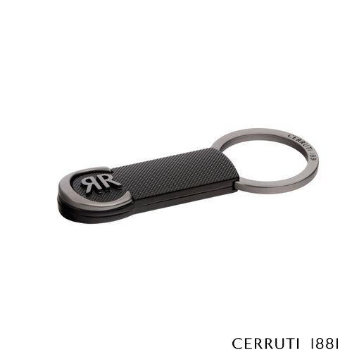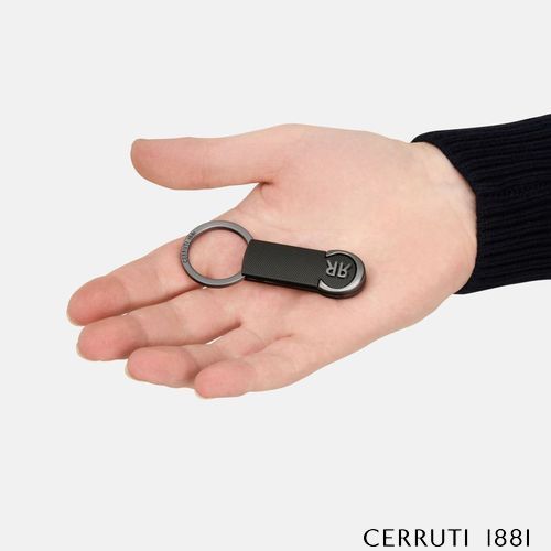 Le porte- clés Belgravia célèbre le logo CRR emblématique de Cerruti 1881, avec de magnifiques finitions métalliques contrastées. Réalisée en laiton, la surface principale est luxueusement gravée d'un motif géométrique et contraste avec le plaquage doux du logo pour un effet à la fois luxueux et discret. Cette version joue sur le contraste entre le noir mat et le bronze mat pour un effet vraiment contemporain.