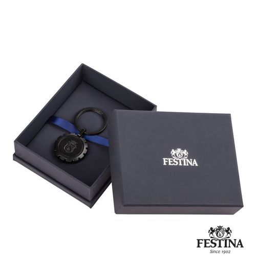 Le porte- clés "Chronobike" noir et mat est inspiré du bouton d'arrêt de l'iconique montre Chronobike . Il comporte une belle décoration du blason Festina, finement gravée sur la surface, le transformant en un accessoire sophistiqué.