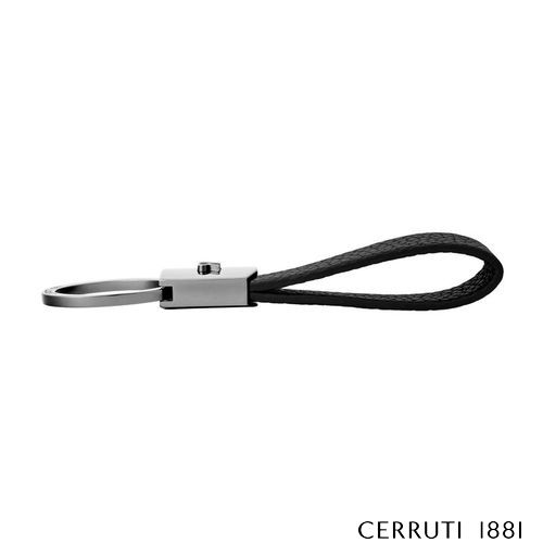 The Jefferson keyring in black combines grained vegan leather with crisp chrome accents to create a functional, minimal aesthetic rooted in timeless elegance. Its clean lines and refined contrasts highlight the sharp, architectural presence of the new CERRUTI 1881 3D RR logo, making it a modern essential crafted with purpose and clarity of design.