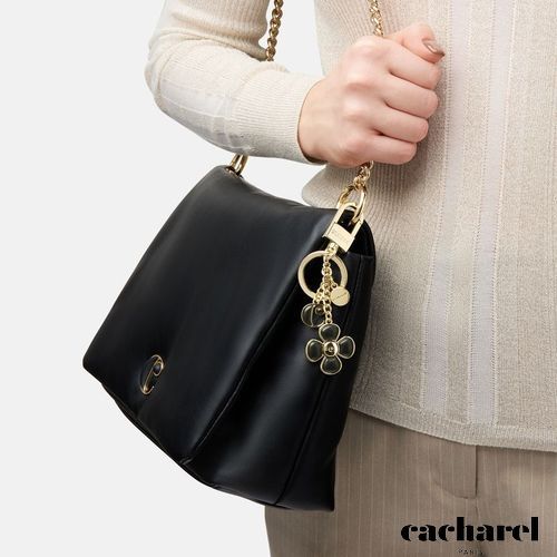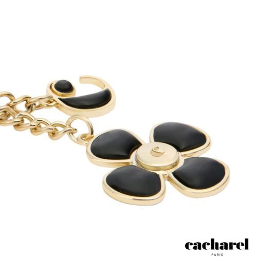 Le porte- clés "Vivienne" en noir et or est un accessoire remarquable de la collection. Composé d'une combinaison ludique de breloques, dont une fleur, l'emblématique "C" et une médaille ronde "Cacharel" délicatement gravée, ce porte- clés est à la fois fonctionnel et élégant. Le mousqueton permet de l'utiliser comme porte- clés ou comme ornement de sac chic, en parfaite harmonie avec les sacs de la collection. Réalisé en laiton avec des inserts en ABS, il offre une touche luxueuse avec une combinaison intemporelle de couleurs noir et or.