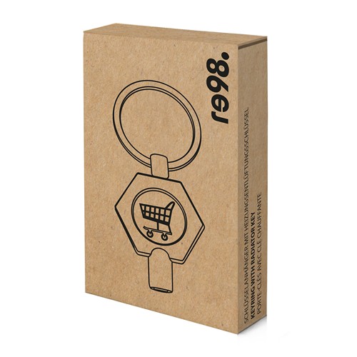 Le porte- clés RE98- RADIATOR- KEY offre deux fonctions utiles à la fois. Une clé d’aération de chauffage et un jeton pour chariot de courses réutilisable sont intégrés dans le porte- clés. Le design du support du jeton en métal solide évoque un tournevis. La surface du porte- clés est mate. Le jeton à caddie (fer, placage nickel) peut être sorti facilement sur le côté et être remis en place après utilisation. La clé d’aération de chauffage s'adapte à toutes les vannes de purge de chauffage classiques.